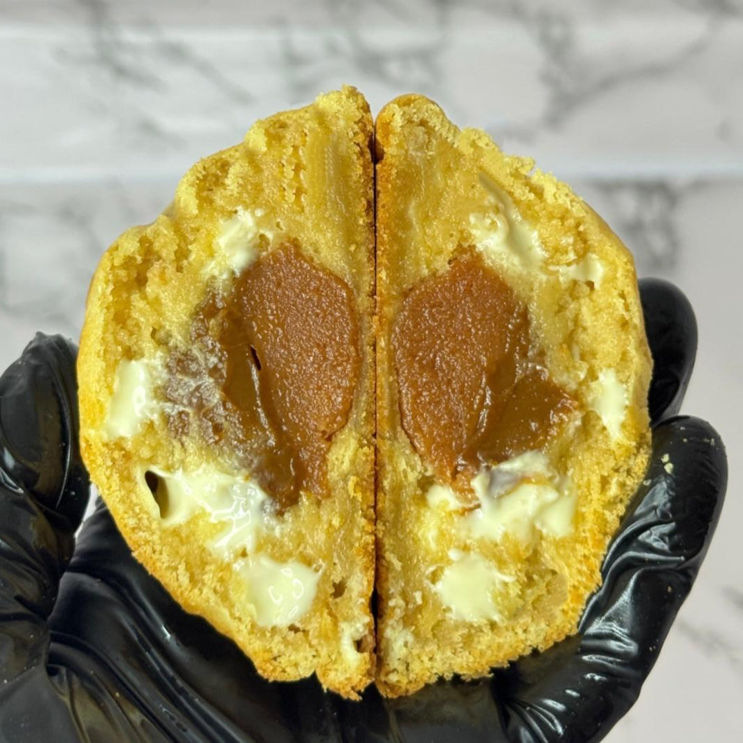 A burst of Latin flavor. This cookie is made with white chocolate chips and filled with a creamy blend of dulce de leche and sweet guava. Every bite is the perfect fusion of fruity, creamy, and indulgently sweet.
