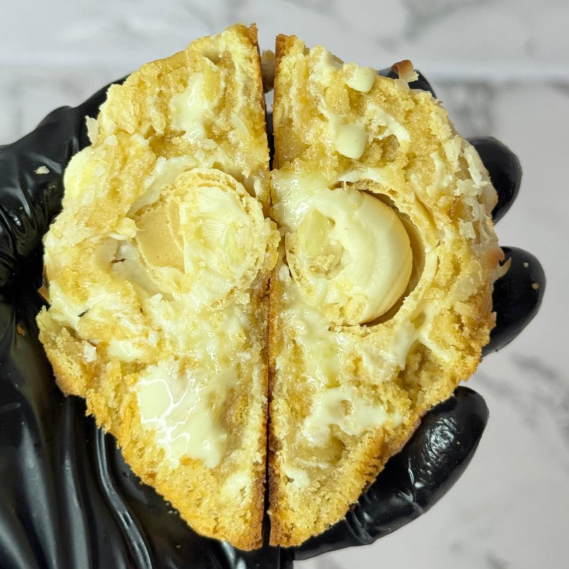 A delicately irresistible cookie: made with white chocolate chips, filled with a Raffaello truffle and smooth white chocolate cream, then finished with a coating of shredded coconut. A sweet, creamy, tropical experience in every bite.