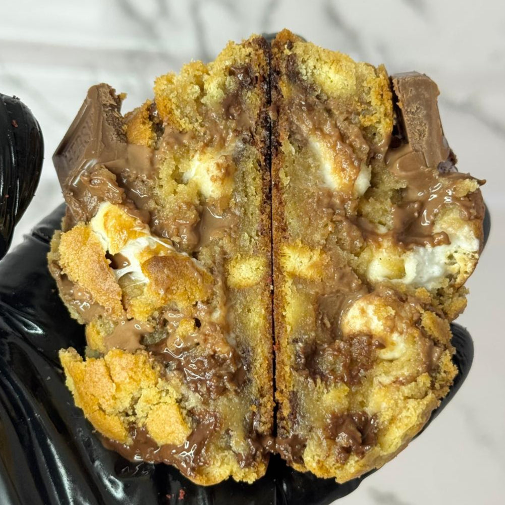 Inspired by the classic campfire treat, this cookie is packed with generous milk chocolate chips, gooey marshmallows, and crunchy graham cracker pieces. It’s the flavor of a bonfire night wrapped up in one irresistible cookie.